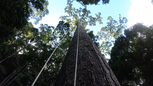 Menara valószínűleg a világ legmagasabb virágos növénye, az előző csúcstartó egy tasmaniai Eucalyptus regnans volt 99,6 méteres magassággal. Forrás: NationalGeographic