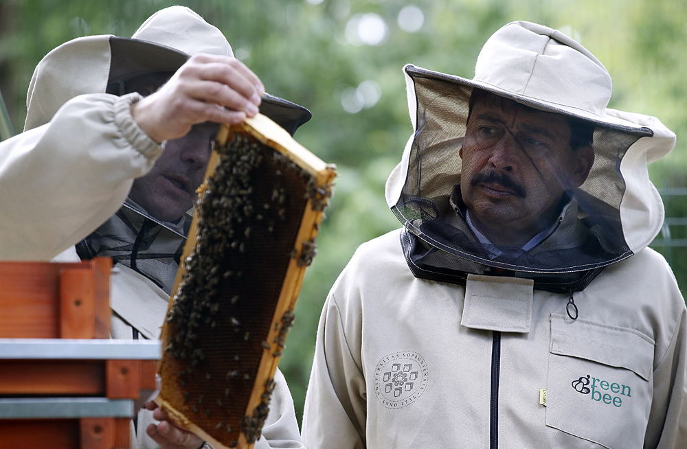 Az előadása után Áder János köztársasági elnök a méhek életét tanulmányozó biomonitoring-rendszerrel ismerkedett a Soproni Egyetemen.