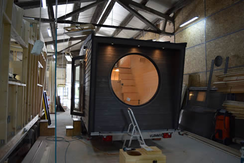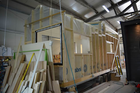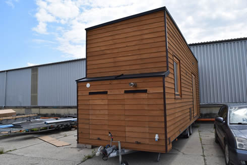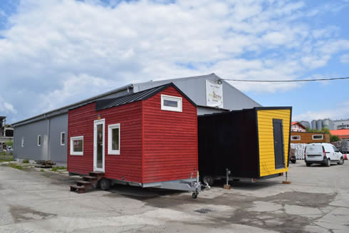 A kapun éppen egy elkészült ház gurul ki, amikor megérkeztünk a csíkszeredai cég telephelyére. "Fotózásra viszik" - árulta el a cég tulajdonosa, Szakács Botond, aki körbevezetett a csarnokban, ahol a házakat gyártják. "Itt négy különböző gyártási fázisban tartó ház látható. Az egyiket még csak most kezdjük építeni, az utolsó pedig 95 százalékban készen van. A második hosszú idő után hazai megrendelésre készül" - mutatott körbe a fiatal tervezőmérnök. Belépünk az egyik házba, amely már csak a végső simításokra vár: bent praktikus, letisztult elrendezés, egyszerű és mégis elegáns bútorzat fogad. A kis házban minden van, amire egy lakóépületben szükség lehet: konyharész, galéria, kihúzható fekhelyek és fürdőszoba alkotják a kívül - belül esztétikus mobilházakat. A házak környezetkímélők, tele zöld megoldásokkal. Ilyen például a száraz w.c., ami most rendkívül népszerű a megrendelők körében.