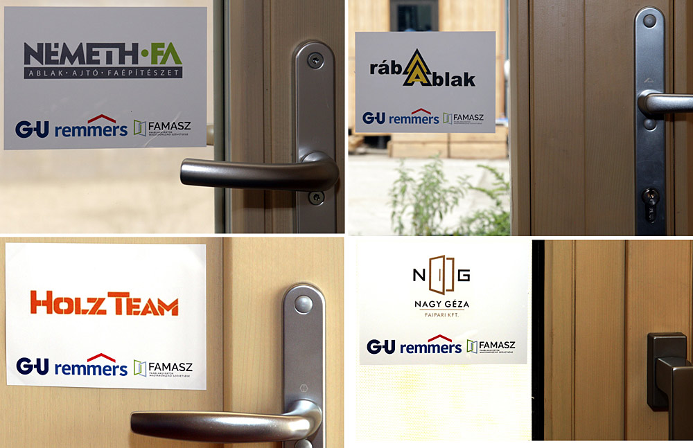 Rábaablak készítette a keleti, illetve az északi oldalt, a Nagy Géza készítette a déli oldalt, a hátsó, a nyugati oldalt a Németh-Fa Kft. készítette. A belső harmonikaajtó pedig a Holz-Team Kft. terméke. Ezek mellett még két komoly támogatónk volt: a G-U Hungary, amely a vasalatokat adta, illetve a Remmers cég, amely a felületkezelést adta, s ezzel lett egységesek a nyílászárók. Íme, itt látható: Magyarországon készülhetnek ilyen minőségű nyílászárók fából.