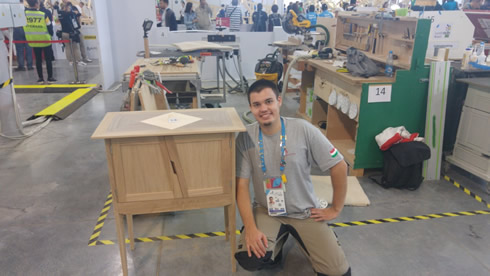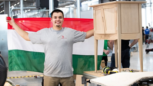 Hogyan készültél fel a világversenyre? A WorldSkills-re a felkészülés a Budapesti Komplex Szakképzési Centrum Kaesz Gyula Faipari Szakgimnáziuma és Szakközépiskolájában történt szakértőm, Fekete Zoltán közreműködésével. A versenyt intenzív munka előzte meg. Fél éven át heti öt nap dolgoztunk napi nyolc órát. Minden héten elkészítettem egy bútordarabot. A versenyről azt kell tudni, hogy minden résztvevő ország tervezhet egy feladatot, amit a versenyen szeretne majd látni. A világbajnokság előtt három hónappal szavazással döntenek arról, hogy melyik ország tervei alapján kell majd dolgoznunk. A kiválasztott pályaművet azonban harminc százalékban módosítják, és azt kell legyártanunk élesben. Ezért a szakértőm minden héten változtatott a terveken, hogy fel tudjak készülni a versenyre. Az idei évben - a korábbiakkal ellentétben - három feladatot szavaztak meg. Az egyik egy tajvani íróasztal volt, a másik egy japán tervezésű komód, a harmadik pedig egy írtervezésű bárszekrény volt. Végül a bárszekrényt kellett elkészíteni a versenyen. A felkészülés folyamán többször is sikerült a bútorokat legyártanom. A gyakorlati rész mellett mentális tréningen is részt vettünk, amit pszichológusok tartottak, hogy tudjuk majd kezelni a versenyen minket érő stresszt, és ennek nagyon nagy hasznát is vettük.