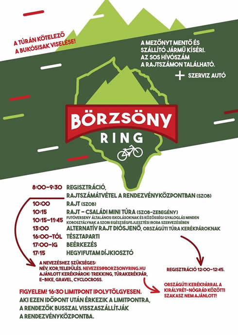 Erről tartott sajtótájékoztatót dr. Rétvári Bence a térség országgyűlési képviselője, Erdélyi Zsolt a Magyar Kerékpáros Szövetség Turisztikai Szakosztályának szakértője, Ferencz Gyöngyi Szob és Rományik Ferenc, Ipolydamásd polgármestere. Rétvári Bence államtitkár: Az Ipoly és a Börzsöny térsége annyira bővelkedik szépségekben, hogy nem titkolt szándékunk szerint egyre több embert szeretnénk erről meggyőzni, és idecsábítani. Nyár elején az IpolyFeszt kulturális rendezvénysorozattal, most október 5-én pedig a Börzsönyt kerülő kerékpártúrával szeretnénk hagyományt teremteni. Ennek lehetőségét sokoldalú polgármesterekkel, különböző szervezetekkel együttműködés tette lehetővé. Az Ipolyerdő Zrt. számára Magyarország kormánya 1,2 milliárd forintos támogatást nyújt kerékpárutak kialakítására - ebből a keretből a Börzsöny útjait is kerékpár-barátabbá lehet tenni. Erdélyi Zsolt a Magyar Kerékpáros Szövetség Turisztikai Szakosztályának szakértője: A túra október 5-én 10 órakor indul a szobi kompkikötőtől. A túrázók 90 km-t tesznek majd meg 620 méteres szintkülönbség legyőzésével. Az egész útvonalon táblarendszer informálja majd a kerekezőket az útvonalról, a pihenőhelyekről. Ezek a táblák már kinn is maradnak, ha valaki máskor szeretné körbejárni a Börzsönyt, akkor is segítségül szolgálnak majd az eligazodásban.