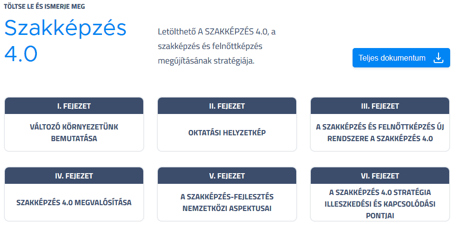 Most merüljünk el a részletekben, amihez az Innovatív Képzéstámogató Központ honlapja szolgál segítségül. Akit érdekel a teljes elméleti háttér, letöltheti a Szakképzés 4.0 stratégia egészét, vagy külön-külön annak egyes fejezeteit. Az IKK honlapján az alábbi részhez kell görgetni. A teljes dokumentum 111 oldal. E stratégiát a Kormány a 1168/2019. (III. 28.) Korm. határozattal elfogadta.