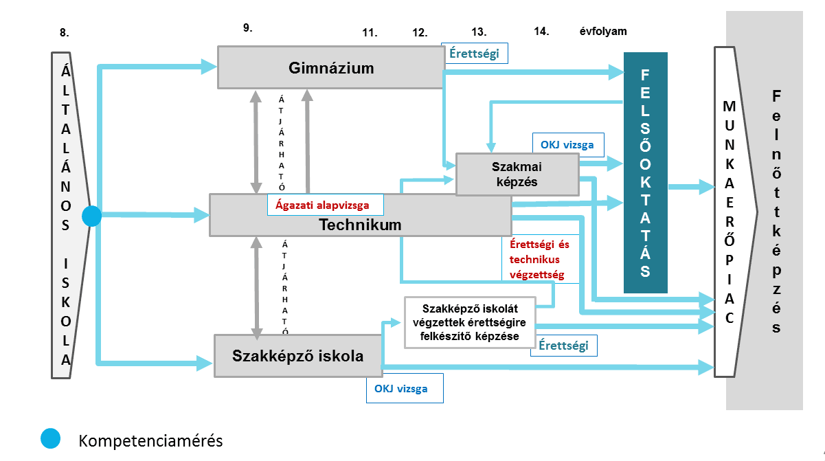 A 40. oldalon található az új szakképzési struktúrájának, a szakképzés új rendszerének bemutatása, amit az alábbi ábra (rákattintva nagyítható) foglal össze: