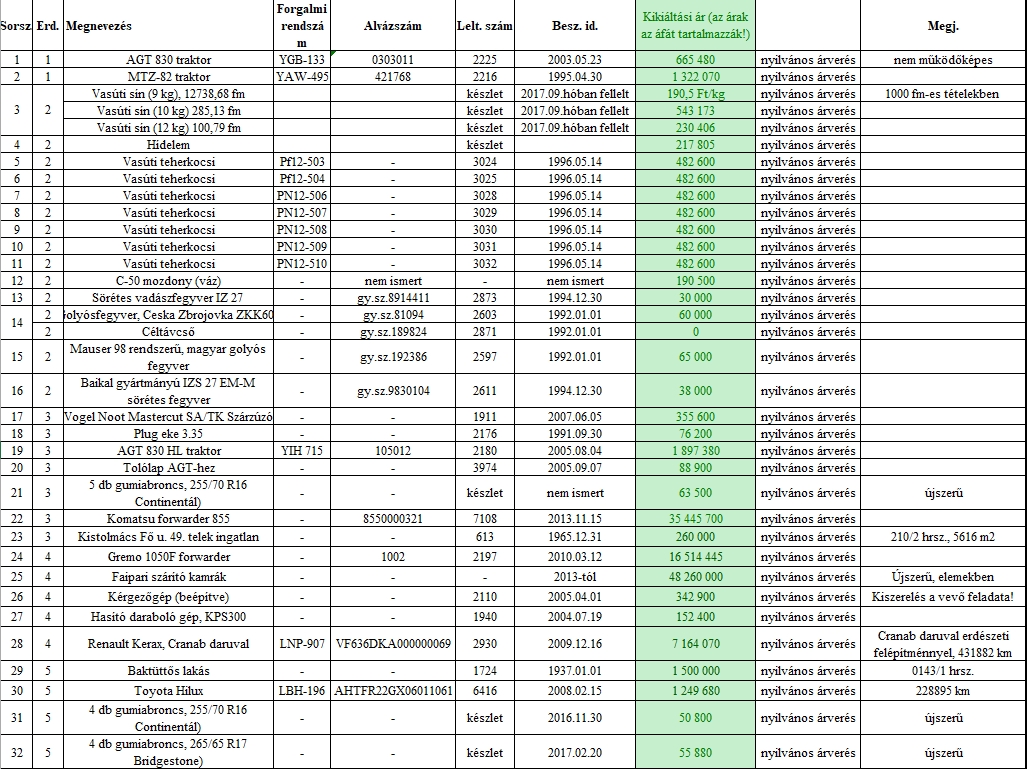 Az árverés időpontja és helyszíne: 2019. november 6. (szerda) 10 óra, a Zalaerdő Zrt. Lenti Erdészete, Lenti Táncsics u. 11/a.