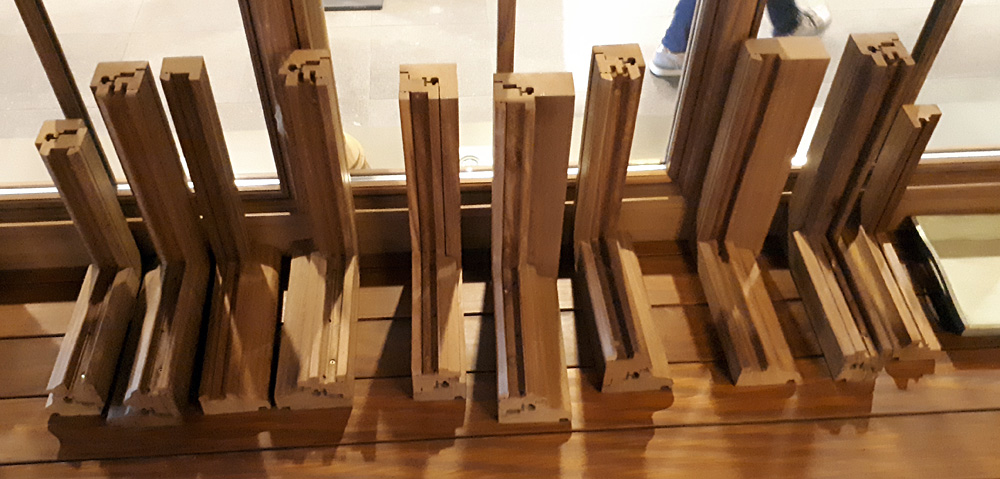 Míg idehaza, vagy mondjuk úgy, hogy a hazai klímasávban, ami ugye itt közép Európában elég szélsőséges tud lenni, szóval itthon már szinte elavult a 68mm-es vastagságú ablak, Belgiumban, szinte ez az általános. Nyilván a 0 és -5°C közötti telek és a maximum 28-30°C fokos nyarak nem igénylik a nagyobb keresztmetszeteket. A kétrétegű üveg a legtöbb esetben megfelel az elvárásoknak. Ennek ellenére itt is elérhető 78-80-as ablakszerkezet. Ennél erősebb keresztmetszetekkel viszont nem találkoztunk. Igazi érdekességnek számított a hagyományos profilok és megoldások, valamint az extra kivitelű profilok markáns jelenléte a piacon. Például a belül szintbe záródó tok és szárny, vagy a műemlék jellegű fa vízvetős profil.
