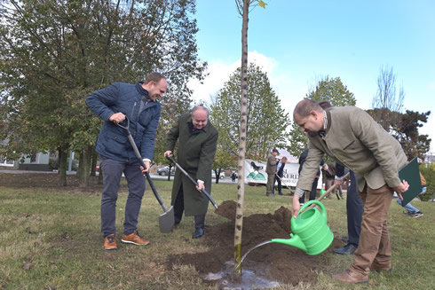 Hernádi Ádám, Esztergom Város Polgármestere hangsúlyozta: a most elültetett vénic szilt, ezüsthársat, ezüst juhart és magas kőrist további 10 ezer fa követi majd Esztergomban. Forrás: Agrárminisztérium