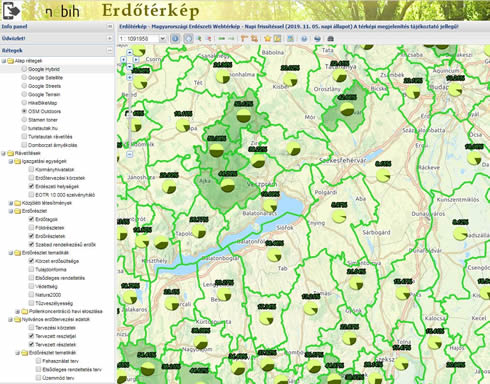 Az https://erdoterkep.nebih.gov.hu/ címen elérhető Erdőtérkép rétegei között a mai naptól megtalálható egy új réteg az Erdőrészlet tematikák mappán belül. Ez a réteg a "Körzet erdősültsége" nevet viseli. Ezt a réteget egy országos, vagy megyei nagyítási szinten bekapcsolva láthatóvá válnak diagramosan, és kattintható "Elem információ"-ként is elérhető módon, az erdőtervezési körzetekhez tartozó százalékos erdősültségi arányok. Külön zöldes áttetsző kitöltést kaptak azok a körzetek, amelyek 42%, vagy azt meghaladó erdősültségi aránnyal rendelkeznek.