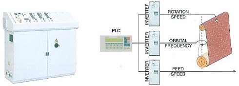 Folyamat paramétereinek beállítása A PLC automatikusan beállítja a helyes összhangot a gép előtolási sebessége, a szalagok forgási sebessége és az orbitálási frekvencia között. A folyamat bármilyen paraméterének változása esetén a PLC automatikusan újra állítja a többi paramétert annak érdekében, hogy a munkadarab felülete mindig állandó minőségű legyen a legjobb csiszolási eredmény mellett.