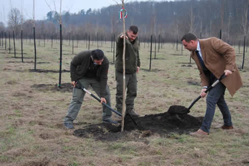 Hozzátette, hogy az erdőgazdaság a korábbi bányaművelést követő rekultivációs területen, Nyirád határában telepít még erdőt kilenc hektáron, Lesenceistvánd határában kocsányos tölgy makkot vetnek három hektáron. A kormány az önkormányzatok és a magángazdálkodók részére a korábbi erdőtelepítési támogatási forrásokat 80-130 százalékkal megemelte, ez hozzájárulhat az erdőtelepítési kedv fokozásához. Dobó Zoltán, Tapolca polgármestere a város nevében is megköszönte a beruházást, hogy a trianoni országcsonkításra ilyen szép erdő telepítésével emlékezhetnek. - A facsemetékből évtizedek múlva erős fák lesznek. Az emlékerdő jelképként szimbolizálhatja a nemzeti összetartozást, újbóli felemelkedésünket. Talán újra gyermekzsivajtól lesz hangos a terület hétvégenként, és megtanuljuk kulturáltan használni az erdeinket - mondta Dobó Zoltán.