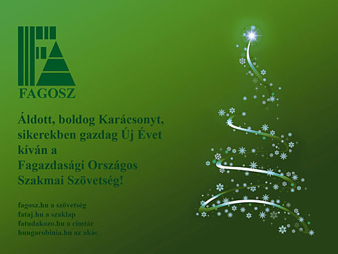 A FAGOSZ Elnöksége és titkársága kíván a Szövetség minden tagjának, partnerének, ismerősének, barátjának, az erdőgazdálkodás, faipar, fakereskedelem minden szereplőjének, beszállítóinak és vevőinek, hatóságoknak, intérményeknek mindezek munkatársainak, s az ő családtagjainak áldott, boldog Karácsonyt, sikeres Új Évet!