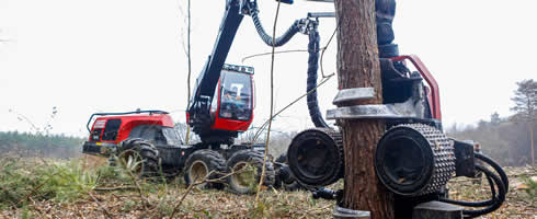 Kemenespálfa határában egy jégverés sújtotta, 65 éves fenyvesben egy Komatsu Forest 911 típusú harvester tarvágásos fakitermelést végez. Hat széles kerekével könnyedén manőverez a tuskók, ágak és rönkök között. A hidraulikus szerkezet ügyesen ráfog az akár fél méter átmérőjű fa tövére, pár másodperc alatt elfűrészeli, könnyedén odébb viszi, elfekteti, a daru végén lévő különleges szerkezet pillanatok alatt elvégzi a gallyazást, darabolást, és a beprogramozott méretre vágja fel a törzseket. Közben megméri a fa átmérőjét, és a törzs minősége alapján a gépkezelő eldöntheti, hogy rönk vagy valami más legyen az adott fatörzsből. Végül a szállításra kész faanyagot szabályos pásztába rakja.