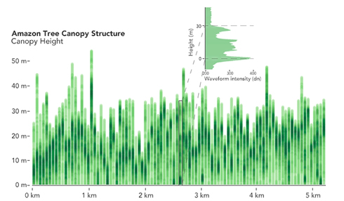 Az eszköz lézeres méréseket végez, a kibocsátott lézerfény visszaverődése alapján az erdőt alkotó növényzet magasságát állapítja meg, hosszabb távú mérései a különféle okokhoz köthető változásokról árulkodnak. A GEDI (Global Ecosystem Dynamics Investigation - Globális Ökoszisztéma Dinamikai Vizsgálat) képes 3 dimenziós képet alkotni az erdőkről, beleértve az ágak sűrűségét, az aljnövényzet és a fák magasságát is, az első mérési eredményekről a NASA számolt be.