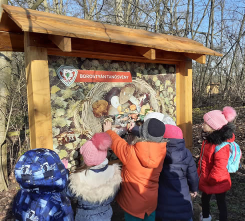 Modern, interaktív - esetenként napkollektorral ellátott - táblák segítségével ismerhetik meg a gyerekek a térségre jellemző állatokat, növényeket. A Nagyerdei Erdészeti Erdei Iskola munkatársai mágneses táblák segítségével mutatják be az erdő szintjeit, az ehető és mérgező gombafajtákat.