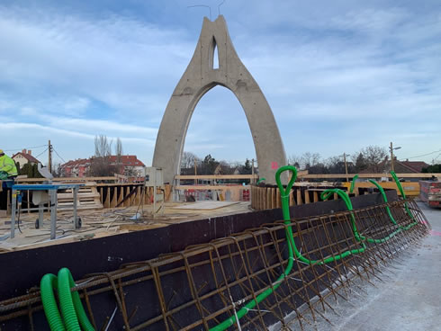 Az épület nagy részén már állnak a falak, helyükre kerültek a templomkarzatok vasbeton lemezei, bennük az elektromos védőcsövekkel, valamint megtörtént a főbejárati kapu zsaluzása. - Ha az időjárás úgy alakul, februárban már az ácsmunkákat is megkezdhetjük - ígérte a lelkész.