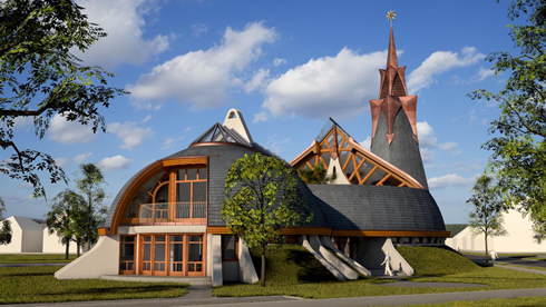 Az építészeti terveket Pesterzsébet Önkormányzata finanszírozta, valamint jelentős adományt tett a Fővárosi Önkormányzat is. A terv 2011-ben már megszületett, de a Mester halála mindent blokkolt, legalábbis lelassított. A tervezést Makovecz Imre megbízásából tanítványa, Dósa Papp Tamás folytatta. Ő felidézte: a mester mindig azt az egy épületet szerette volna megépíteni, amely az emberiség előtt már állt a világban. A templomnak az az alapgondolata, hogy olyannak kell lennie, mintha az alja a földből nőne ki, a teteje pedig az égből ereszkedne alá. Makovecz megfogalmazásában: "A templom a megváltás titokzatos helye, az átalakulás, a megújulás, az égiek és földiek egymásra találásának, az élő kövek, a felzengő, diadalmas énekbeszéd helye, Isten csöndjének felszakadása, a színről színre látás csonthasító pillanatának szentegyháza."