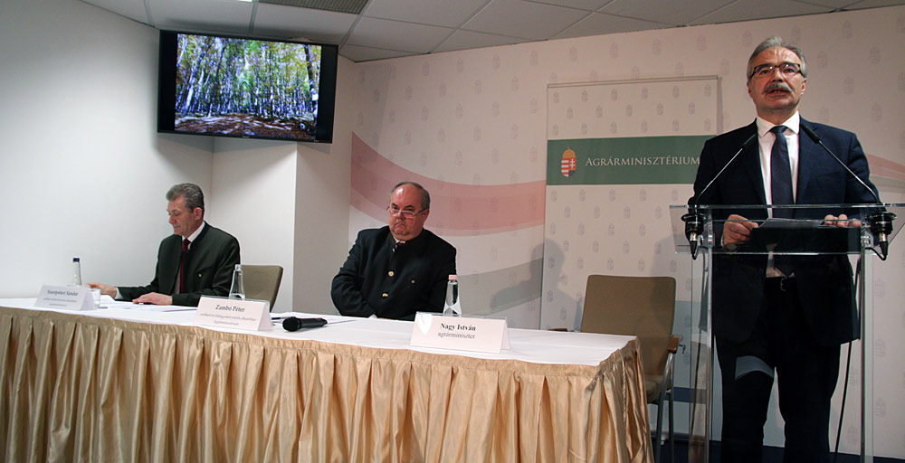 A sajtótájékoztatón a Nagy István miniszter mellett Zambó Péter államtitkár és Szentpéteri Sándor helyettes államtitkár is részt vett.