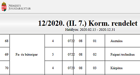 2020 szeptemberétől az új szakképzési törvény alapján történik a szakmai oktatás. Külön köszönet mindenkinek, aki hozzájárult áldozatos munkájával ahhoz, hogy a fa- és bútoripar önálló ágazatként jelenhessen meg és egyúttal nagyobb súllyal szerepeljen a nemzetgazdaságban.