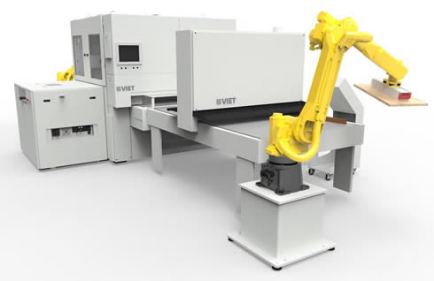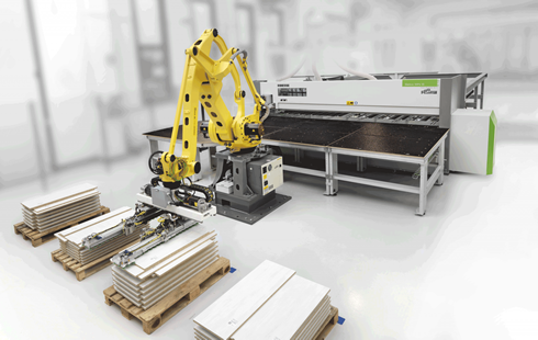 Tipikus alkalmazási terület a laptermékek konfekcionálása. Táblafelosztó gépek előtt és "mögött" egyaránt hatékonyan tud dolgozni egy ROS rendszer. Tehát nemcsak a felrakodásban segíti a gépkezelő munkáját, hanem az leszedésben, valamint a hosszirányú vágások elvégzése után a keresztirányú darabolás előkészítést pozicionálását is hibátlanul elvégzi. Emellet a kész munkadarabok kiválogatásában és leszedésben is tökéletes munkatárs.