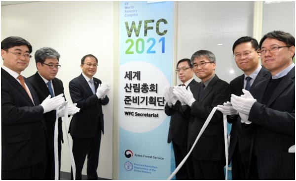 A fenti felhívás megjelent a mintegy 32 ezer felhasználót elérő hírlevél, az InFOflash 26. számában is, így bizonyára sok magyarországi címzett is értesült már erről. A jelen írás célja, hogy a többi hazai érdeklődő is olvasson a jövő évi Erdészeti Világkongresszusról. A koreai és FAO titkárság megkezdte a Kongresszus programjának kidolgozását és az ezzel kapcsolatos informaciók a közeljövőben megjelennek a a fenti honlapon, illetve hamarosan elindul a XV Erdészeti Világkongresszus önálló honlapja is. A XV. Erdészeti Világkongresszus koreai titkárságát hivatalosan 2020. március 9-én nyitották meg Park Chong-ho (balról a harmadik), a Koreai Erdészeti Szolgálat miniszterének részvételével Daejeon városában, a Szolgálat székhelyén.