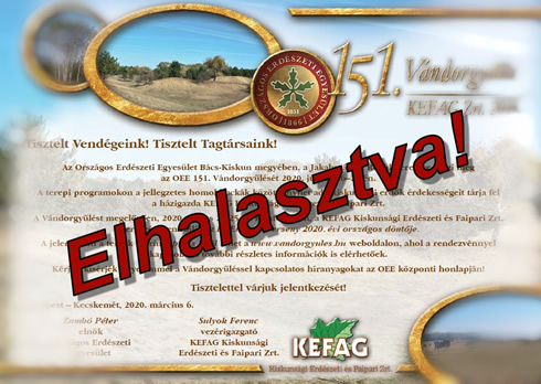 Az Országos Erdészeti Egyesület és a házigazda KEFAG Zrt. a korábban meghirdetettel ellentétben, az országos járványügyi helyzetre és annak lehetséges következményeire tekintettel, az idei Év Erdésze verseny és a 151. OEE Vándorgyűlés elhalasztásáról döntött. |