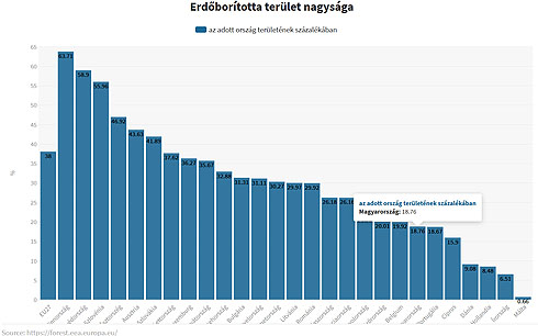 A teljesség kedvéért hozzá kell tenni, hogy a Központi Statisztikai Hivatal adatai alapján a magyarországi erdőterület nagysága ugyanebben az évben, tehát 2018-ban 1,94 millió hektár volt, ami közel 21 százalékos erdősültséget jelent. Az általunk fentebb ismertetett adatokat - valamennyi uniós ország vonatkozásában - a Copenicus Land Monitoring Service szolgáltatta, amely az Európai Bizottság Közös Kutatóközpontja és az Európai Környezetvédelmi Ügynökség felügyelete alatt működik. Elfogytak erdeink