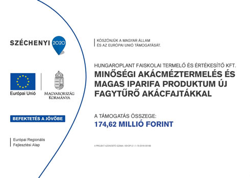 Elért eredményünk az akác vegetatív csemete előállításának technológiai fejlesztése, a hatékonyság és termelésbiztonság fokozása. A fejlesztésnek köszönhetően a vállalat 20 munkahelyet tudott megőrizni. A projekt-megvalósítás időtartama 2018.02.01. - 2020.01.31. volt.