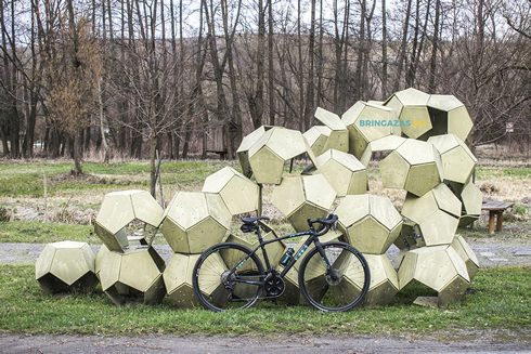 Drótszamarainkat visszafordítottuk Tolcsva irányába és újra megpróbáltuk felkutatni a tekepályát. Már a 3. helybelit kértük meg, segítsen nekünk megtalálni, merre lehet az egyetemisták alkotása, mire a körülírások alapján sikerült a szőlők mellett, egy elhagyatott erdős részen megpillantani. Eddig nem említettük, de sehol nincsenek ez az alkotások kitáblázva a falvakban, ezért valóban egy kalandtúra kerékpárral felfedezni ezeket az installációkat.