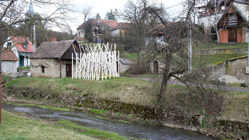 Identitásteremtő helyszínben gondolkodtak a Széchenyi Egyetem hallgatói és tanárai, amikor Erdőhorváti központjába megálmodták a Négyszögletű Kerekerdő mesebeli tere ihlette installációjukat. A patakparton, egy régi kovácsműhely mellett építették fel az alkotást, amely erdőként fogadja magába az embert, bentről kipillantva pedig egészen más arcát mutatja a község. Mivel a közösségi terek szempontjából a kamaszok kissé magukra hagyottak, a csapat egy olyan találkozási pontot szeretett volna létrehozni, amit ez a korosztály is a magáénak érezhet.