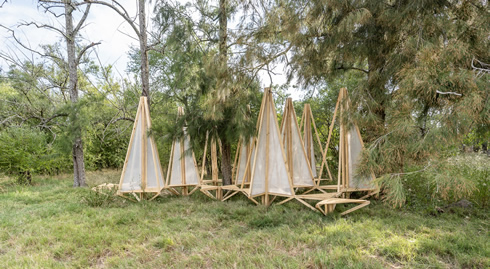 Az Eco-sistema projekt a táborban pop-up struktúraként jelent meg, feladata az, hogy visszatükrözze a neki életet adó tájat és a közösséget. Nyitott és rugalmas rendszer, amely rátelepedett a meglévő erdőre, hogy együtt egy új valóságot határozzanak meg.