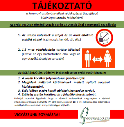 A járványügyi vészhelyzet miatt speciális szabályok mellett vehetők igénybe a kisvasút szolgáltatásai, melyeket a csatolt plakát tartalmaz.
