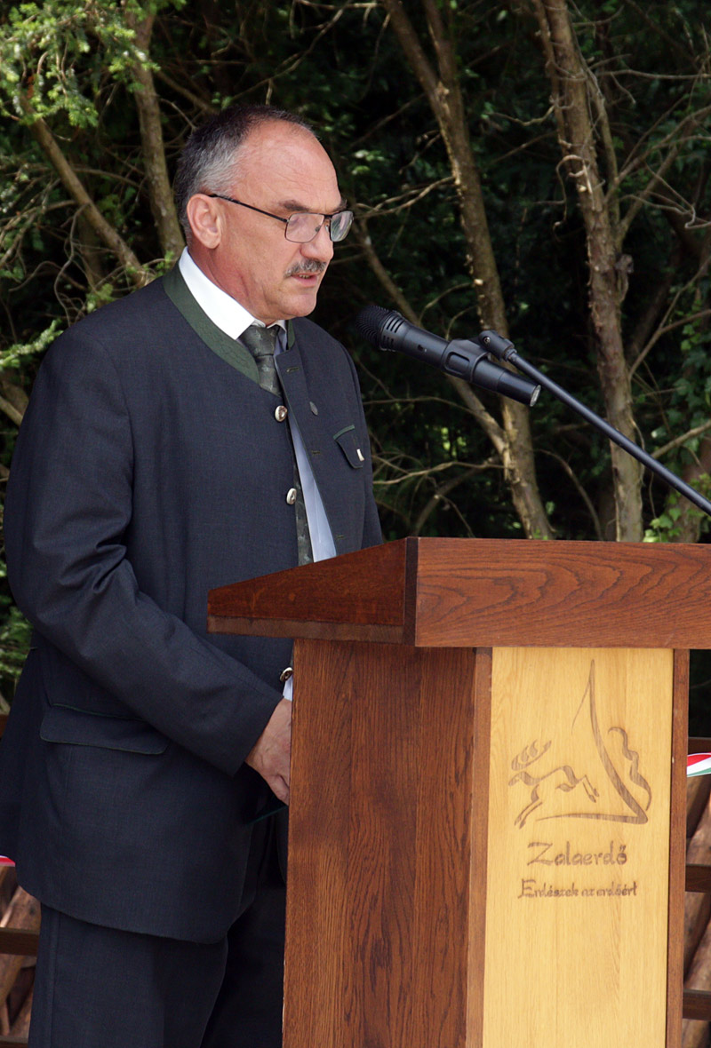 Cseresnyés Péter (parlamenti államtitkár, ITM, a Mura Nemzeti Program miniszteri biztosa): Az ember kultúrájának anyagát kezdetektől a természet ősforrásaiból merítette. Mintáit az örök természet nagyszerű formáiból vette. Kaán Károly megidézett gondolata jelen korunkban sokak számára már-már az eretnekség határát súrolja, mivel az emberi kultúra forrásának tisztán és világosan a természetet jelöli meg. E hagyományos szellemiség szerint nem bárhová születünk és nem bárhol élünk a világban. Jelenleg az egyik legmélyebb törésvonal és konfliktus éppen e fogalompár körül bontakozik ki szerte a világban. Egyre azt hallani: bárhol lehet élni, nem számít: hova születtünk, hova kötnek a környezetünk és őseink által ránk hagyományozott értékek, mert bárhol megtalálhatjuk az egyéni boldogulásunk helyszínét. E globalista "bárhol" szemlélet éppen ellentéte annak a lokális, közösségi kultúrát építő gondolatnak és eszmeiségnek, amelyre a Mura Nemzeti Program is felépül. Mindez azt is jelenti, hogy fontos az erkölcsi dimenzió, mivel ennek a valaholnak, a konkrét helynek mindig figyelembe kell vennie a meglévő hely adottságait, lehetőségeit és az ott élt generációk által felhalmozott tradíciót. Hisszük, hogy a Mura Nemzeti Program két lába: az agrárium és a turizmus fejlesztés megőrzi és megtartja mindazon értékek és örökség egészét, amely e vidéket, annak hagyományait jellemzi. E gondolkodásmódot a történelem során folyamatos kihívások és támadások érték és érik, különösen napjainkban. A Mura program ezzel a támadással és kihívással dacolva formálódott meg néhány éve, e térség történetében eleddig egyetlen átfogó fejlesztési tervként. Célkitűzése a helyi, vidéki gazdaság újra megerősítése, a megélhetési lehetőségek fejlesztése. Éppen a Budafai Arborétum fogadó épületének átadó ünnepsége az ékes bizonyítéka annak: ha létezik egy közös vízió, a jövő építésének egységes terve, akkor kiváló partnerekkel nagyszerű beruházások létesülhetnek. A mai átadó ünnepség jelképnek tekinthető, mert több szereplő: a támogatást adó kormányzat, a Zalaerdő Zrt. és az itt élő emberek közösséginek összefogásával és javára valósul meg. A Zalaerdő kiváló partner e munkában. Az általa kezelt lenyűgöző természeti környezetben fontosnak tartja a turizmus fejlesztését is, ami a Mura Program egyik fő pillére. Az erdei kisvasút pályahálózatának és gépparkjának a korszerűsítése mellett ugyanis a vasúthoz kapcsolódó más turisztikai attrakciók fejlesztését is kiemelt feladatának tekinti a Zalaerdő. Ennek révén született már meg az erdei feltáró út hálózat kerékpározhatóvá tétele keretében a Szentpéterfölde - Pusztamogyoród útszakasz és a mai nap főszereplője, ez a fogadóépület. Fel kell fedezzük értékeinket, kreatív energiáinkat. Kívánom, hogy a fogadóépület töltse be célját, fogadjon minél több vendéget itt Budafai Arborétumban, itt, amit immár bátran nevezhetünk Budaföldének.