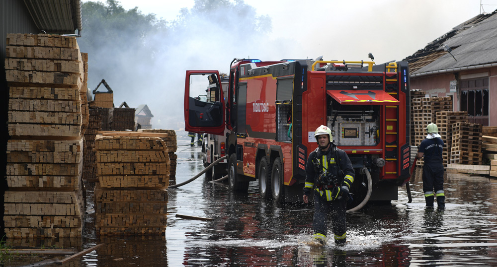 Az egész nap tomboló tüzet több mint ötven tűzoltónak kilenc vízsugárral sikerült megfékeznie. A mintegy 300 méter hosszú épületben keletkezett tűz kiterjedt az ott tárolt faanyagokra és targoncákra. Az épületből több gázpalackot sikerült épségben kivinni - tette hozzá a sajtóügyeletes.
