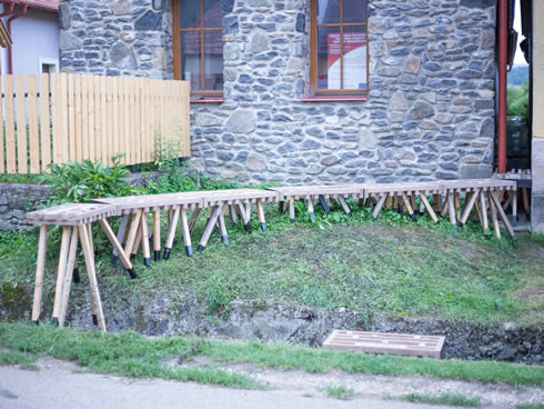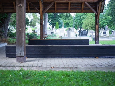 A Moholy-Nagy Művészeti Egyetem csapata a kapolcsi temető ravatalozójába készített különleges ülőpadokat, amik fa alapanyagát egy japán felületkezelési technikával, a shou sugi bannal tartósították.