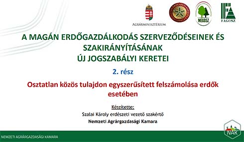 Az osztatlan közös tulajdon megszüntetése, illetve felszámolása a mezőgazdasági ingatlanok vonatkozásában már több, mint egy évtizede napirenden van. Most nyílik azonban először lehetőség arra, hogy a folyamatban a magánerdők hasznosítását, használatát is nagymértékben akadályozó osztatlan közös tulajdon felszámolása is szerepel. Erre is tekintettel a tájékoztató fórumon az osztatlan közös tulajdon egyszerűsített felszámolásának a 2021. január 1-én hatályba lépő törvényben rögzített lehetőségei mellett arra is igyekeztünk felhívni a figyelmet, hogy erdő esetén milyen tulajdonosi szempontokat célszerű majd érvényesíteni.