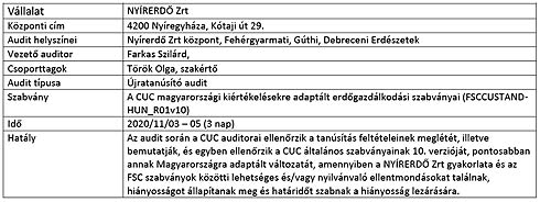 Nyírerdő Zrt. FSC felülvizsgálati auditja