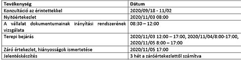 A kiértékelési folyamat tervezett menetrendje az alábbi: