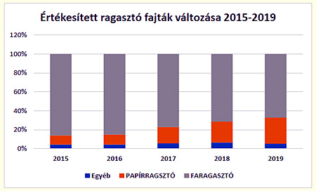 Az összes termelt mennyiségünk folyamatos, állandó növekedést mutat minden évben, azonban a ragasztótípusok részarányai fokozatosan eltolódnak.