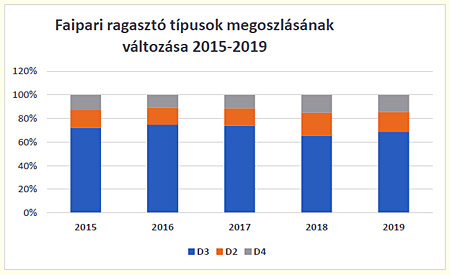 A ragasztótípusok mennyiségét értékesítési megoszlás szerint tekintve a D3-as vízállóságú ragasztók részaránya 70 %, a D2-es és D4-es ragasztók részaránya körülbelül 15-15 %.