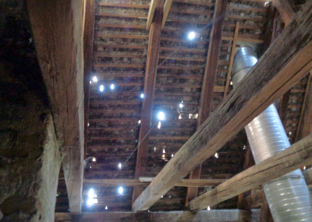 1. kép: Beépített, megelőző faanyagvédelmi szempontok szerint kiválasztott faanyag is ellenőrzésre szorulhat .