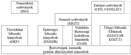 1. ábra: Az építésügyi műszaki irányelvek helye a műszaki előírások hierarchiájában
