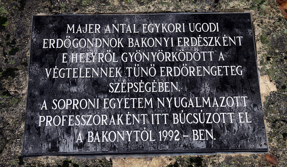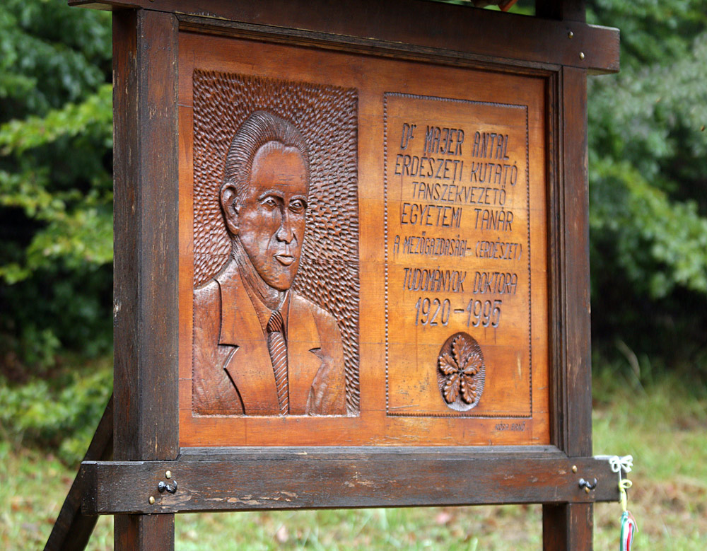 Az emléktábla felirata: Dr. Majer Antal erdészeti kutató, tanszékvezető egyetemi tanár, a mezőgazdasági (erdészeti) tudományok doktora. 1920-1995.