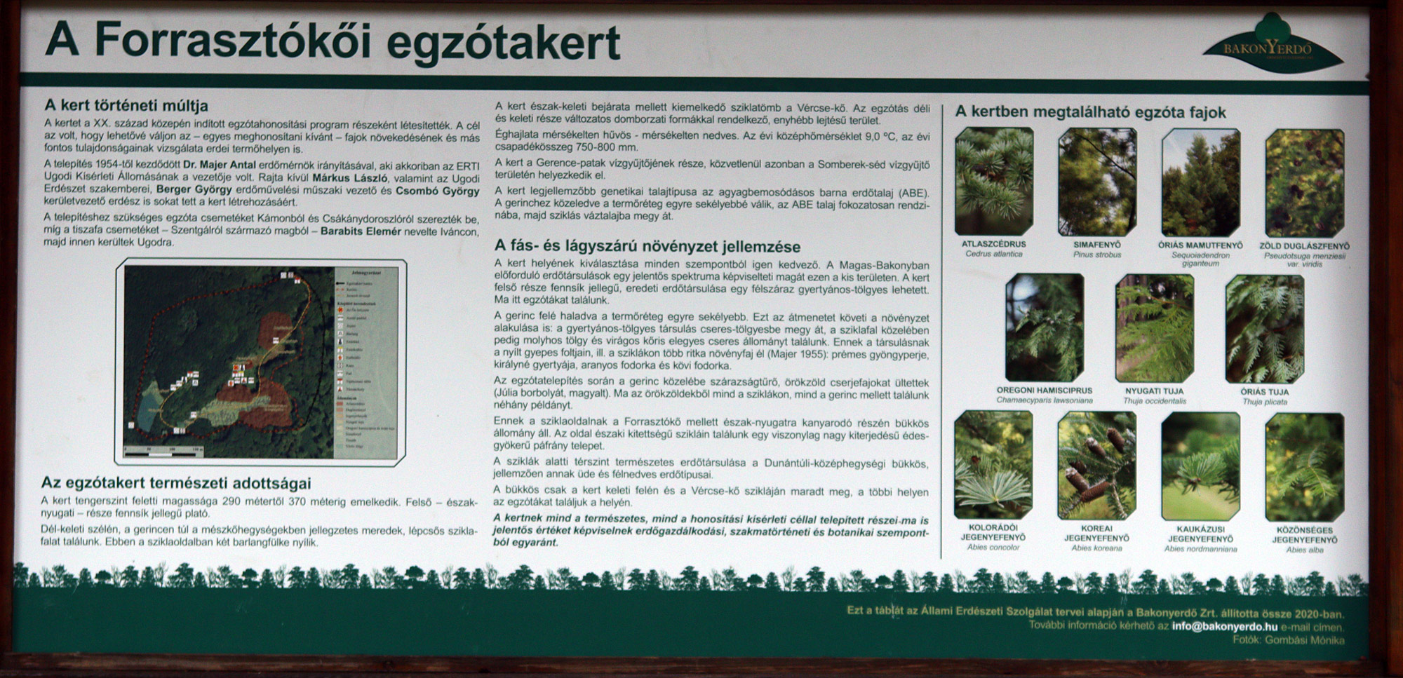 A II. Vh. után jelentős volt a fahiány Magyarországon, így építőfa sem volt elég, az pedig a mai napig elsősorban fenyő. Bizonyára e helyzetből adódott a számtalan kísérlet arra, hogy a hazai erdőkben több fenyőt lehessen nevelni, s így jöttek létre az ország különböző vidékein az erdészeti egzóta kertek, kísérletek. A luc a Mátrában, Zalában és más felé is sok esetben pusztul manapság. Forrasztókőn gyönyorű, egészséges egzóta fenyőféléket láthattunk, mely állományok immár több, mint 60 évesek. Az itteni és a sok más helyen lévő hasonló, létező, élő egzóta fenyő kísérleteket talán érdemes lenne abból a szempontból áttekinteni és kiértékelni, hogy melyik faj melyik termőhelyen és magasságban nem lenne-e alkalmas a pusztuló lucosok szerkezetváltó lecserélésére. A faanyaguk kiváló, azzal nem lenne gond. Úgy tűnik - a sok évtizedes tapasztalatok alapján - lenne e célra alkalmas, bevált egzóta fenyőféle. Kétségtelen problémát jelentene azonban a megítélés: e fajok elterjedt (több, mintkísérleti) erdészeti alkalmazása abból a szempontból, hogy ezek itt nem őshonosak. Hiszen egzóták. Kérdés azonban, hogy az a klíma, melyet manapság tapasztalunk és melyet a közelebbi és távolabbi jövőre az ezt kutatók előre vetítenek, nos az a klíma őshonosnak tekinhető-e? Lehet-e az ősivel a változóhoz alkalmazkodni, vagy valamilyen mértékben más megoldásokat is be kellene vetni? Pláne, ha itt van íme kezünk ügyében, bizonyított eredményekkel. (Pardon, utóbbit majd az erre felkent hozzáértők állapíthatják meg.) Első nekifutásra mindenképpen figyelemre méltő lenne a hozzáértők részéről az immár közel 70 éves egzóta kísérleteket e szempontból mihamarabb kiértékelni, s ennek eredményét a nagyközönség számára is érthetően közzétenni.