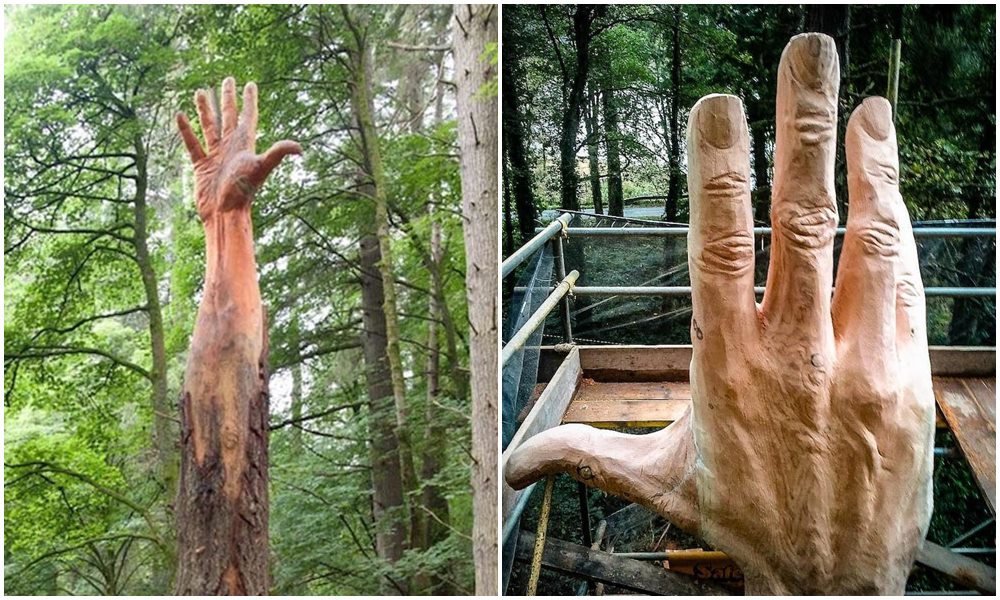Faragott óriáskéz a Vyrnwy erdőben (Wales)