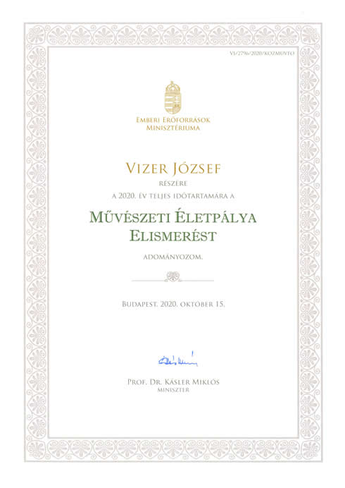 -------------------------------------- Újabb rangos elismerést vehetett át Újpest legkiválóbb műbútorasztalos mestere. Vizer József, akinek 2015-ben Áder János köztársasági elnök a Magyar Érdemrend Tisztikereszt polgári tagozat kitüntetést adományozta, most a Művészet Életpálya Elismerést is megkapta Kásler Miklóstól, az emberi erőforrások miniszterétől.