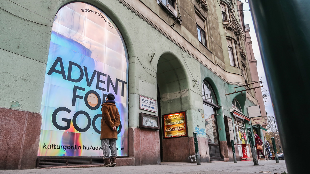 Az Advent for Good kirakat kiállítás olyan vállalkozásokat mutat be, melyek alkotói hátrányos helyzetű vagy helyi munkavállalókat foglalkoztatnak, és helyi alapanyagokból, fenntartható életciklusú termékeket hoznak létre. A kiállítók között találunk újrafelhasználható ételcsomagolókat, ökotudatos gyermekjátékokat, testpozitív menstruációs bugyit, zero waste táskát, kézműves csokoládét és fenntartható lakberendezési tárgyakat is. A Kultúrgorilla célja egy olyan ünnepekre ráhangolódást segítő esemény életre hívása, amely a járványhelyzetben is teljes értékűen hozzáférhető. Kiállítók: Baktai Dorottya, Németh Katalin / Repityke Bernscherer Andrea & Autistic Art Alapítvány Dányádi Sára Farkas-Pap Éva / Misija Feldmár Nóra / Habitat for Humanity Magyarország Gulyás Ferenc / Gulyi ReCycling Győrbíró Csenge / Coffeewear Hajgató Sára / Botanika Kockacsoki Kultúrgorilla Ligeti Bolt Majoros Zita / Printa MOME Szociális Design Kutatócsoport Molnár Dóra / Thisisredy Paper Up reNEW Technologies Sekhina Szalai Bálint, Király Adrienn Szilágyi Andrea / NES Shoes Temesi Apol Vatány Szabolcs