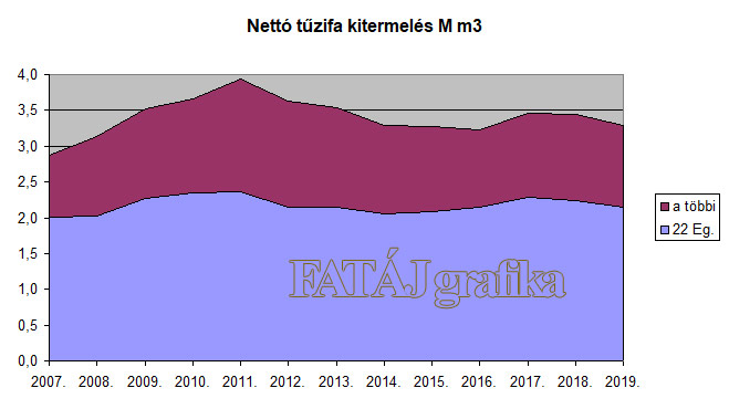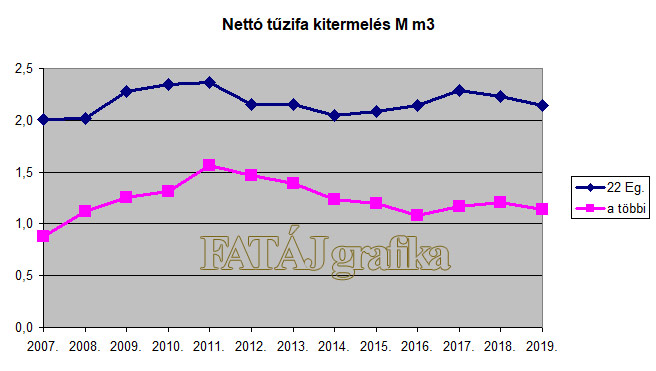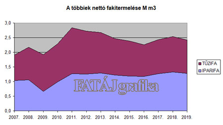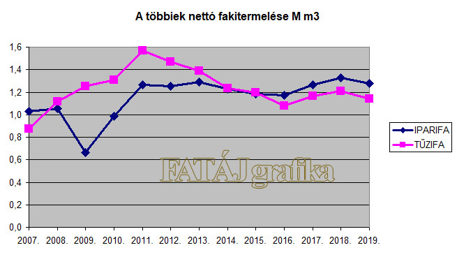 A többi erdőgazdálkodó, tehát a többnyire magánosok körében az iparifa-tűzifa viszony érdekesen más, mint a 22 erdőgazdaságnál, aminek bizonyára alapvetően a jelentősen eltérő fafajösszetétel az oka. Minden esetre itt csak egy szakaszon több a tűzifa, mint az iparifa, majd 2016-tól sorrend megfordul.