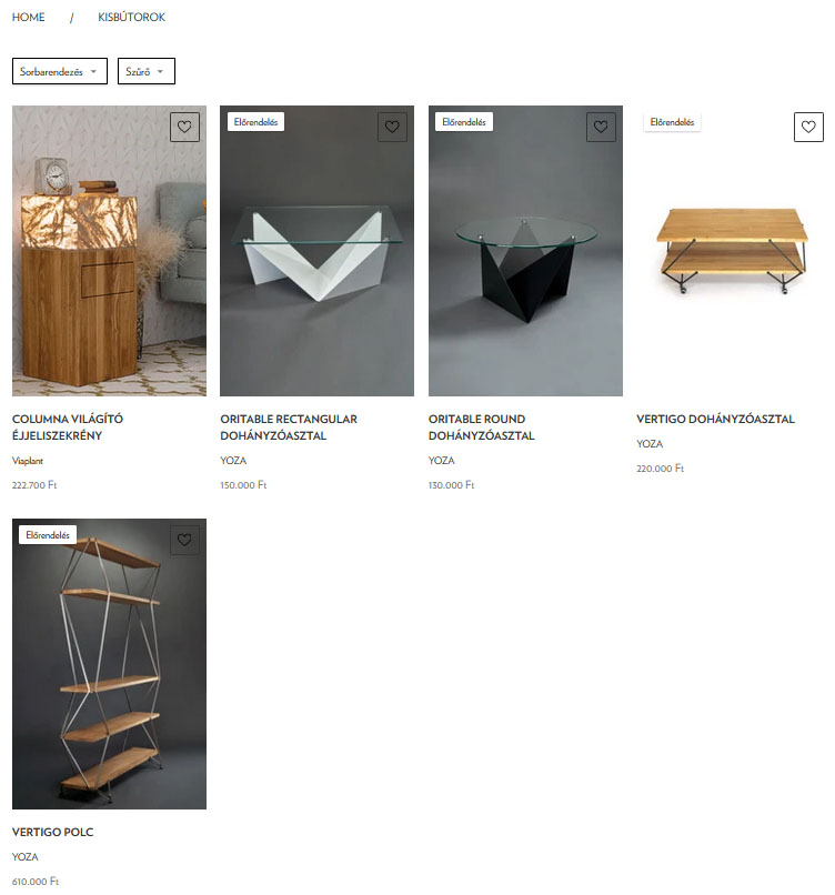 FATÁJ kiegészítés: Cikkünk szerkesztésekor a Bútor szekcióban 5 termék érhető el (ebből 4 egyenlőre csak előrendelhető). Az árak 130.000 - 610.000 Ft között változnak.