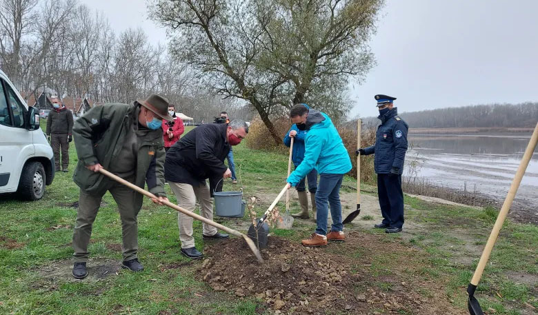 A sajtótájékoztatón a Tisza-tavi Sporthorgász Nonprofit Kft. előtt néhány fát elültetett F. Kovács Sándor országgyűlési képviselő, Hubai Imre, a Jász-Nagykun-Szolnok Megyei Közgyűlés elnöke, Ujvári Imre, Tiszafüred polgármestere, Lovas Attila és Fejes Lőrinc a KÖTIVIZIG képviseletében. Forrás: ilovetiszato.hu