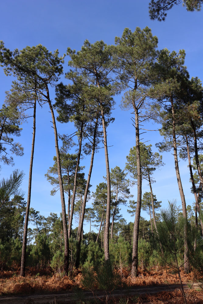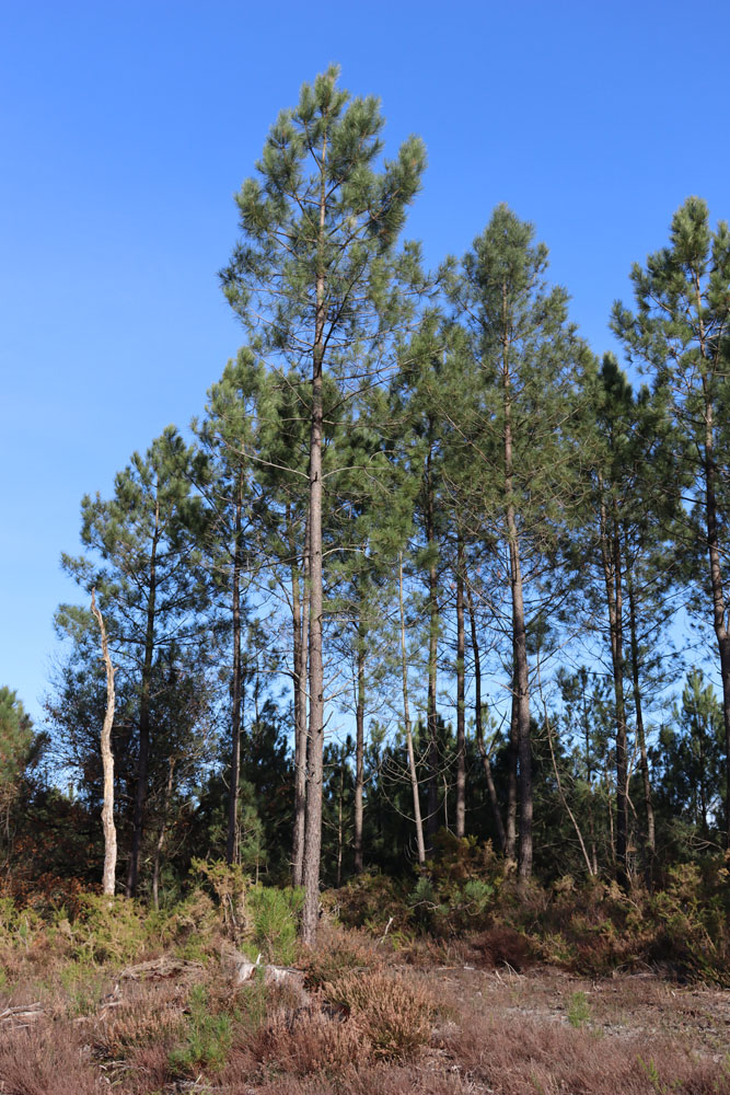 Franciaország délnyugati részén, Nouvelle Aquitaine régióban találjuk Európa legnagyobb, gyakorlatilag egybefüggő monokultúrás, telepített erdejét – az egymillió hektáron szinte kizárólag Pinus pinaster, azaz tengerparti fenyő található. A faj Délnyugat-Franciaországban őshonos, eredeti élőhelye a Bayonne fölötti partszakasz dűnés vidéke, itt alkotott egybefüggő erdőket, és innen kiindulva kezdődött el a telepítése, nagyjából az Atlanti-óceán, az Adour és a Garonne által határolt „háromszögben” (Landes de Gascogne) – a munka III. Napóleon alatt vett komoly lendületet, ennek során hatalmas mocsaras területeket is betelepítettek vele azzal a céllal, hogy azokat kiszárítsák és művelésre alkalmassá tegyék. A területen 2009 januárjában tomboló Klaus mérsékelt övi ciklon 200 ezer hektárnyi erdőt döntött ki, majd az ezt követő két évben gradáló szúbogarak miatt további 30 ezer hektár pusztult el. A Klaus elvonulása után hatalmas munka kezdődött, a kármentés nyomán több millió köbméter fát tároltak be kifejezetten erre létesített telepekre, ahol szórófejekkel éveken keresztül folyamatosan öntözték azt, hogy a romlásnak elejét vegyék. Az erdőgazdálkodók helyzete kilátástalannak tűnt, mert ekkorra már begyűrűzött a spanyol ingatlanpiaci krach, az épületfára nem volt kereslet, a papíripar pedig ilyen mennyiségben nem tudott fát fölvenni. A faanyag egy része rendkívül nyomott áron Kínában talált vevőre, de a pesszimizmus ellenére megkezdődött az újratelepítés, amit az elmúlt tíz évben gyakorlatilag minden parcellán elvégeztek, néhány száz hektár kivételével újra tengerparti fenyővel. A betárolt készleteket értékesítették vagy földolgozták, szerencsére a faipar is partner volt abban, hogy a magánerdőgazdák folytassák ezt a tevékenységet. A piacra zúduló hatalmas mennyiségű faanyag miatt az ár 30 €/m3-re esett, az állam ezt éveken keresztül kiegészítette, de 2015 végén még így is csak 33-42 €/m3 volt. Nagyjából 2018-tól azonban már nem fölöslegről, hanem fahiányról lehet beszélni, az ár ennek következtében emelkedni kezdett, 2020 végén már 55-60 €/m3 között jár, ami mindenképpen biztató. A kutatás igyekszik választ adni, arra, mi okozhatott ilyen mértékű károkat, így mélyreható vizsgálatok kezdődtek magával a fajjal, az alkalmazott agrotechnikával, valamit a potenciális telepíthető más fajokkal is. Tény, hogy a nemzeti mezőgazdasági kutatóintézet, az INRA (ma INRAE) már a hatvanas évek óta foglalkozik a fajjal, de korábban ez elsősorban (termelői nyomásra) a vágásforduló csökkentésére és a hektáronkénti hozam növelésére, valamint az iparnak minél jobban megfelelő törzsformára való szelekcióra fókuszált. Fél évszázad alatt háromszorosára nőtt az éves növekmény, míg a hatvanas években ez 4,8m3/ha/év volt, 2015-re már elérték a 15 m3/ha/évet, a törzsformában pedig 40%-os javulást értek el. Az agrotechnikában a foszfortrágyázás alapelem lett, telepítéskor és három-négy évvel ezt követően kiadva, amire azért is szükség van, mert a nagyon savanyú, gyenge tápértékű. laza homok magas alumínium-tartalma a természetesen jelenlévő foszfor fölvételét akadályozza. Vizsgálatok folytak a gyomflóra visszaszorítására is, ugyanis Landes homoktalaján a gyom olyan mértékű konkurenciát jelent a csemetéknek, amik évekkel visszavetik a növekedésüket. A Klaus után azonban a fajtanemesítés új irányokat vett, és noha már három bejelentett tengerparti fenyő-fajta is van a piacon, a szelekció a biotikus és abiotikus stresszfaktorokkal szembeni rezisztencia erősítése felé fordult. Tény, hogy a korábbi 60 éves vágásforduló mostanra 35-40 évre rövidült, a Klaus óta azonban kiemelt figyelmet kap a gyökérzet, ami a ciklon alatt a „gyönge láncszemnek” bizonyult, a fák jelentős részét ugyanis a szélvihar nem eltörte, hanem tövestől fordította ki. Ez alapvetően nem meglepetés annyiból, hogy a Landes síkságáét átszelő kevés folyó völgyét, valamint a dűnéket leszámítva, ahol a talajvíz a domborzati okok miatt lényegesen mélyebben van és a gyökerek kénytelenek a víz után mélyre hatolni, a magas talajvíz miatt a gyökérzet a talajnak csupán a legfölső rétegében fejlődik, így sokkal kevésbé tudja rögzítő funkcióját betölteni. Nem véletlen tehát, hogy a sík területekkel ellentétben a folyóvölgyek mentén és a dűnéken gyakorlatilag nem tett kárt a Klaus. A sík területeken további problémát okoz, hogy 30-50 cm mélységben kavicsos ágy, a száraz területeken pedig ennél valamivel mélyebben, de akár speciális, kifejezetten Landes-ra és Gascogne-ra jellemző homokkő (alios) réteg is kialakulhat. A kifejezetten rossz vízgazdálkodást tetézi, hogy a területre a nagyon nagy napi hőingadozás is jellemző, hajnapban akár nulla fok közelébe is csökkenhet a hőmérséklet, míg napközben negyven fokra is fölmehet. A kamara szakmai részvételével jelenleg több agrotechnikai és genetikai kísérlet is folyik, az előbbi kategóriába a telepítést megelőző talajművelési, valamint tápanyag-gazdálkodási és gyomosodás-vizsgálatok tartoznak. A tapasztalatok alapján szakítani kell azzal a korábbi gyakorlattal, ami talajművelés nélkül vagy sekély felszíni szántás után telepített, szükség van a mélylazítós előkészítésre annak érdekében, hogy a csemeték minél nagyobb eséllyel és gyorsabban kezdjenek fejlődni. Ugyan a legtöbb talajtípuson még kevesebb éves csapadék mellett is hasznos a nem túlzó gyomborítás, annak ellenére, hogy Landes-ban egyes részeken (a megye déli részén) évente akár 1000-1400 mm is esik, a szinte struktúra és szervesanyag-tartalom nélküli 